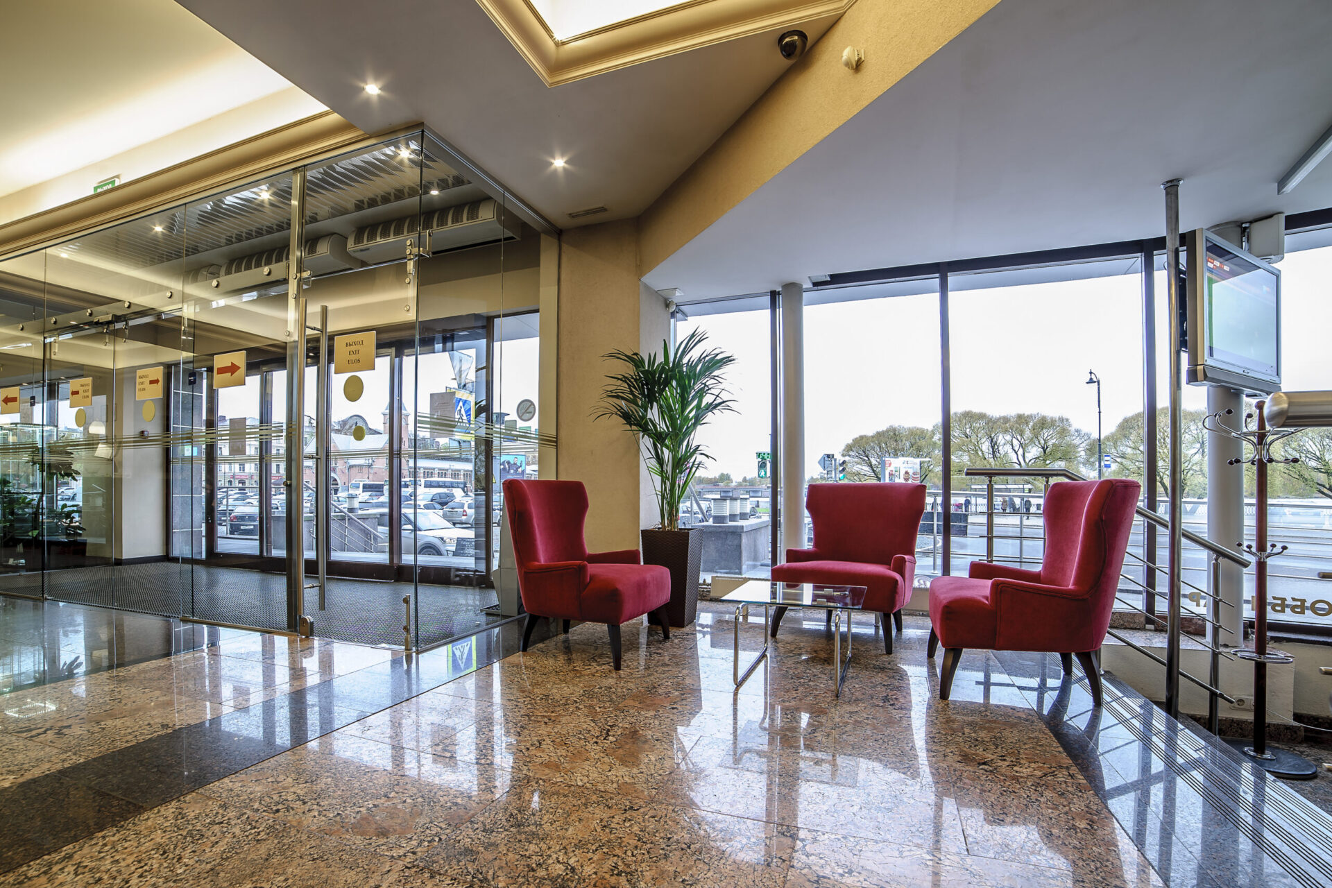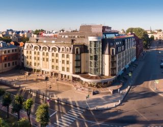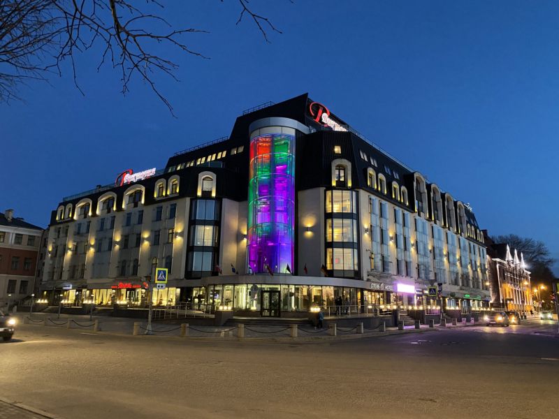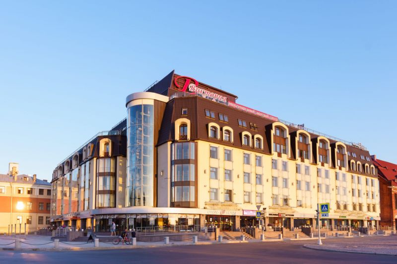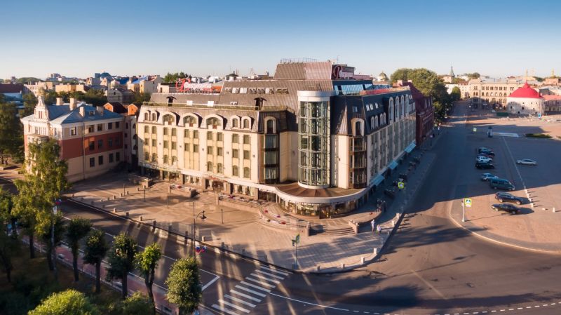 Шестиэтажное здание гостиницы возвышается на берегу Выборгского залива возле бывшей Рыночной площади. Жилой фонд включает в себя 60 номеров разных категорий, в том числе просторные апартаменты. В каждом номере установлен кондиционер, есть собственная ванная комната с душем, халатами, тапочками.