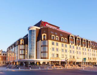 Поездом до ж/д вокзала г. Выборг, далее пройти пешком 840 м до отеля.